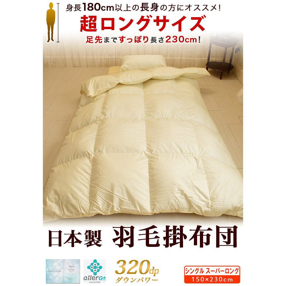 背の高い長身の方用の羽毛掛け布団と敷布団が入った3点セット布団になります。