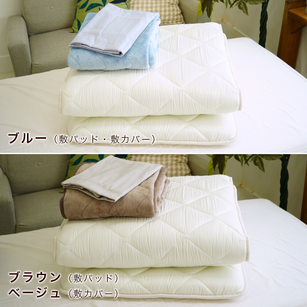 敷パッドと敷カバーは、落ち着きのあるベージュカラーで揃えました。
