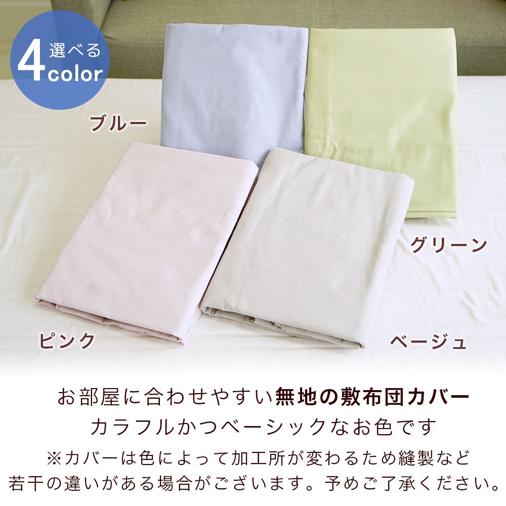 敷布団カバーは吸湿性・吸水性に優れた、お肌に優しい「綿100%」。