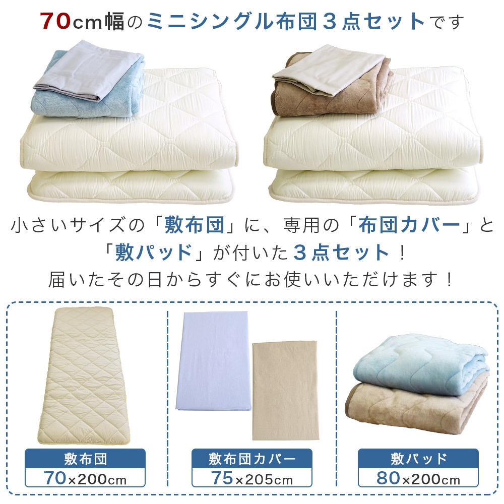 ※こちらの小さめ敷布団3点セットは敷パッド・敷カバーのブルーセット、