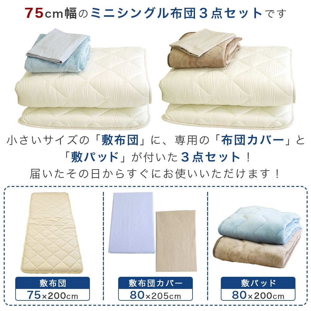 ミニシングル 敷布団 セット 75cm幅 収納も便利 添い寝 仮眠 子供用 秋冬用