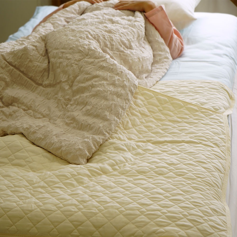 冷房の効いた部屋でも足元の冷えを防ぎ、心地よく眠るためにお肌に優しいピュアコットンガーゼを使用した「足ポケット式 敷パッド」が新登場!