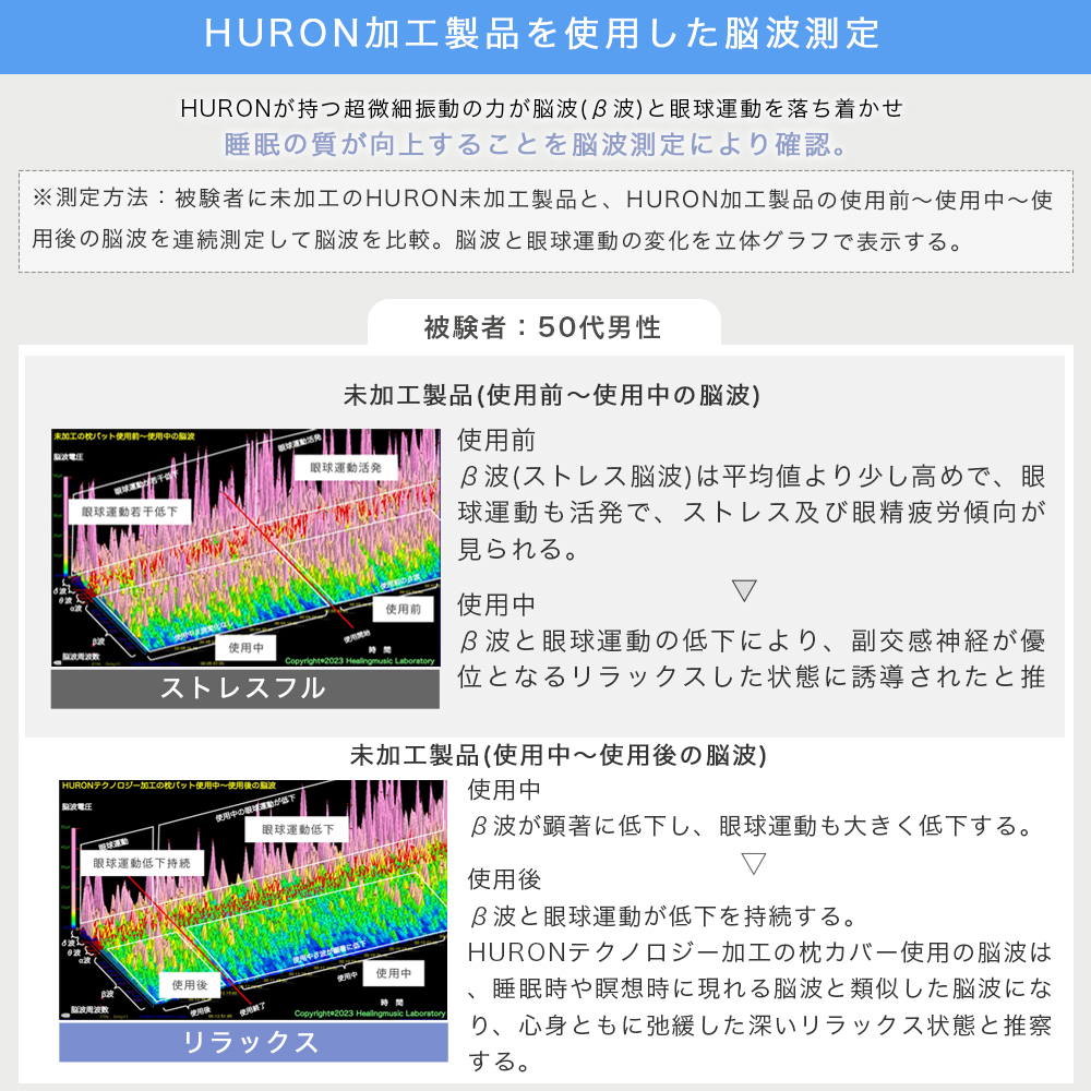 「HURONテクノロジー(超微細振動)+天然鉱石を練り込んだテラヘルツプリント加工」を施して、身体全体をリラックスモードへ導きます。