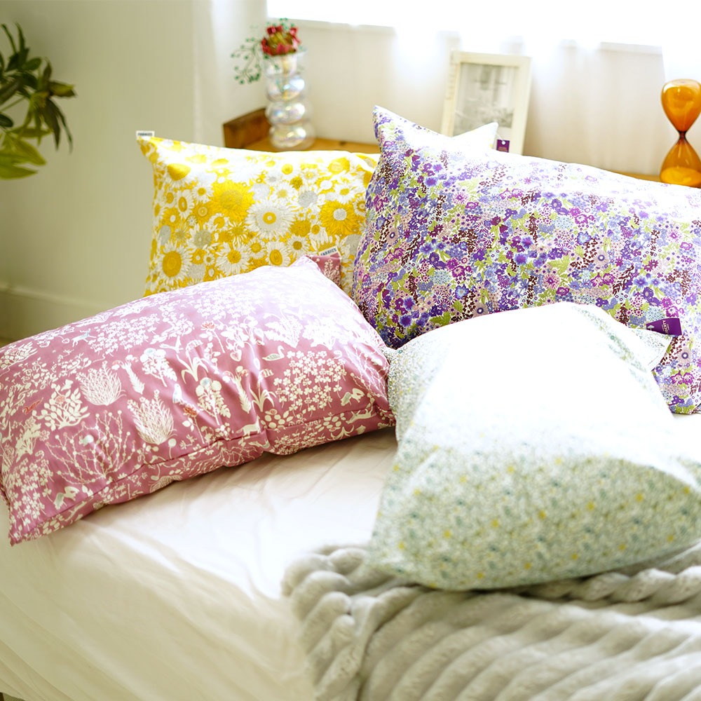 世界中で愛されるリバティプリントの華やかな枕カバーです。