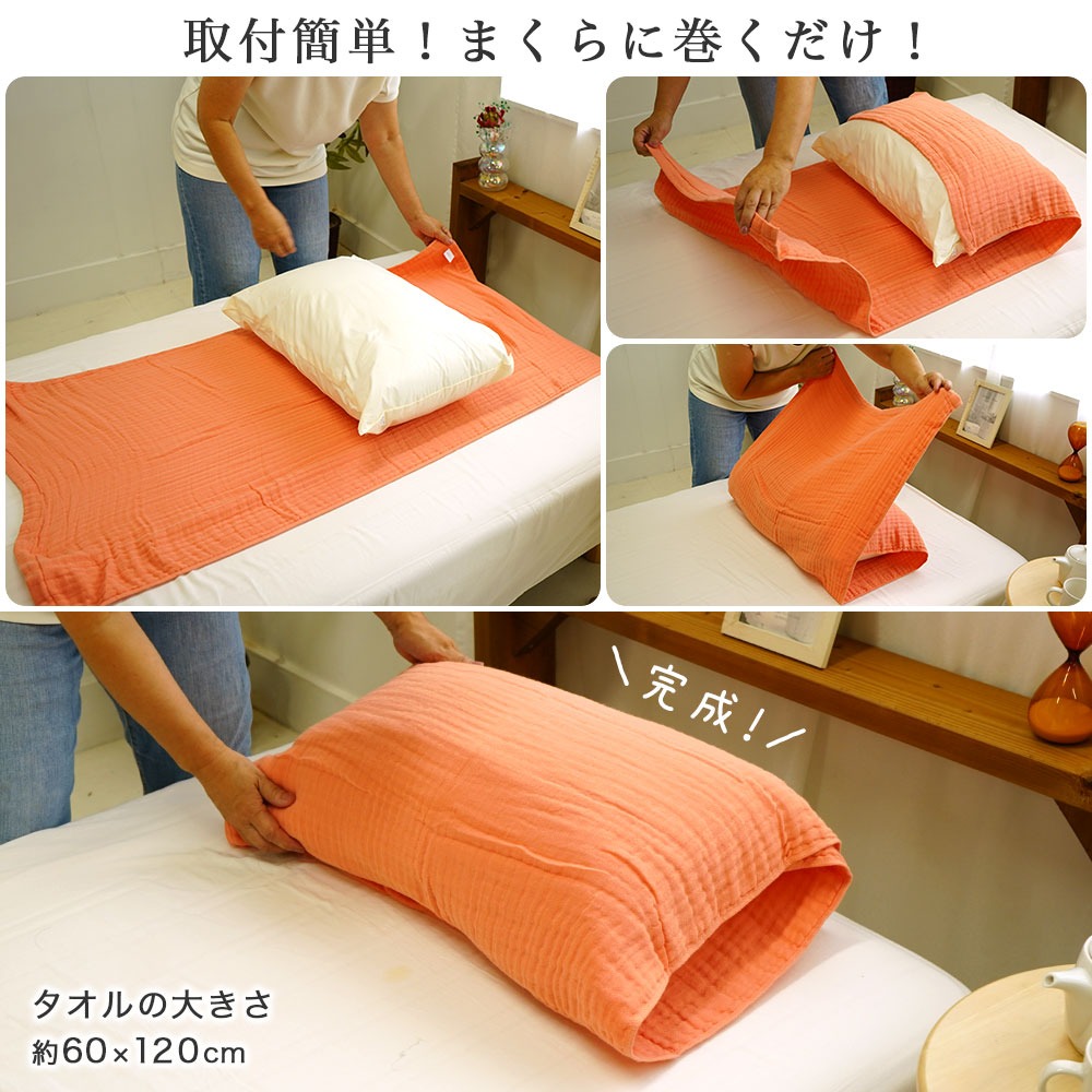 長方形のタオル状になっているのでお使いの枕にくるっと巻きつけてお使いください。