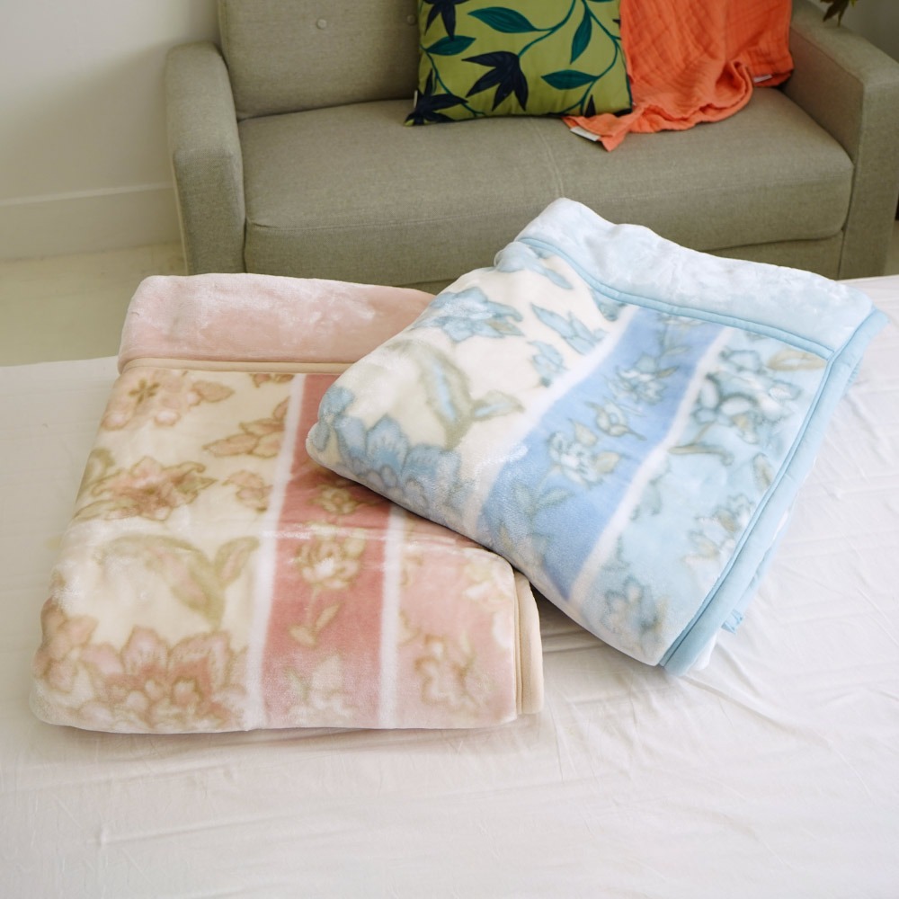 2枚合わせでしっかり暖い、安心のブランド西川製マイヤー毛布です。