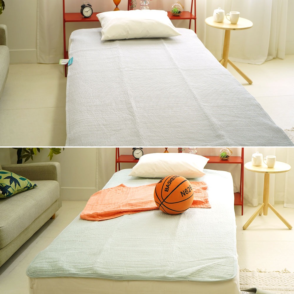 さらっと心地よい綿100%でオールシーズン使える ヌビ 水洗い加工 敷パッド シングルサイズ(100×205cm)