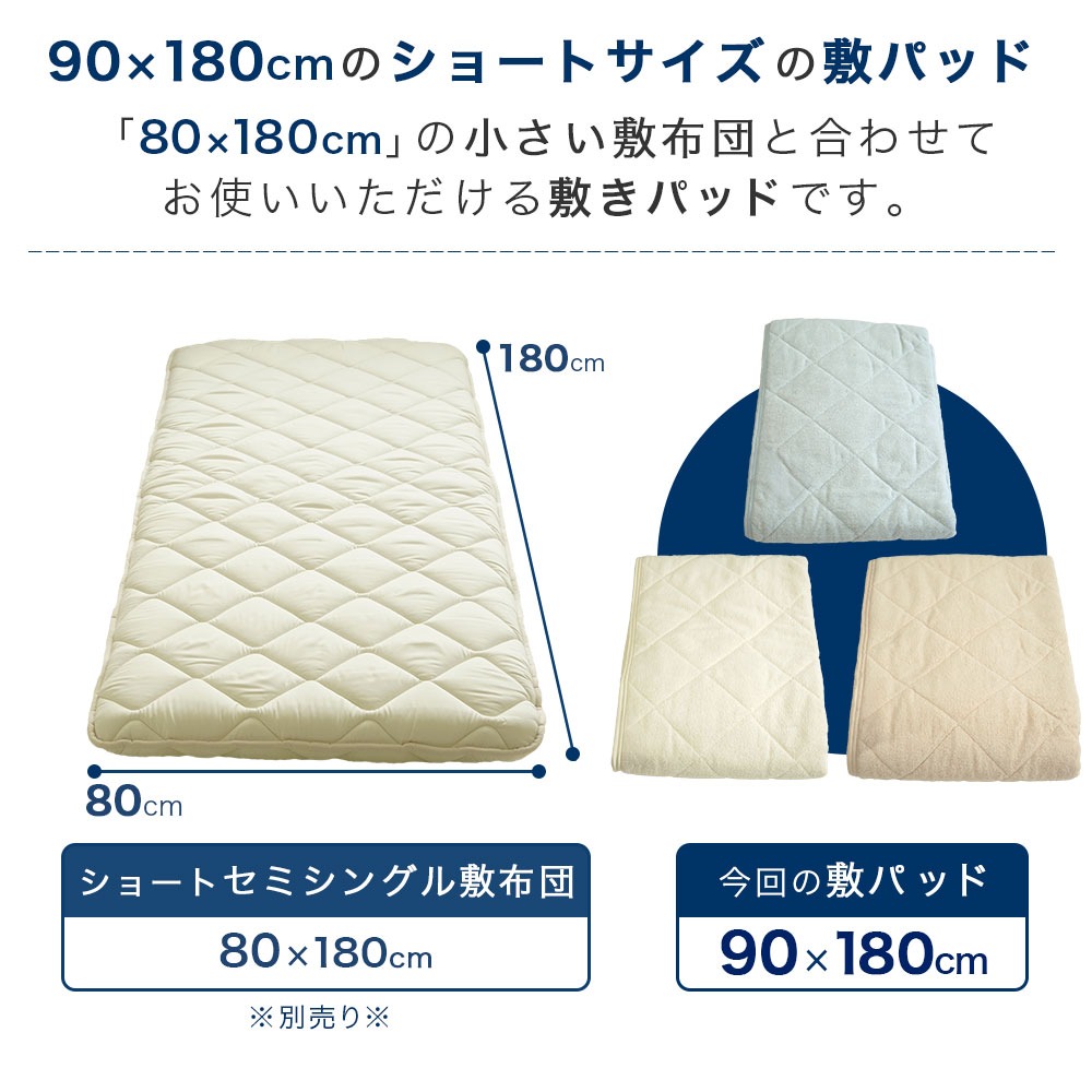 ロマンス小杉のシングルサイズより小さいサイズ90×180cmの敷パッドです。