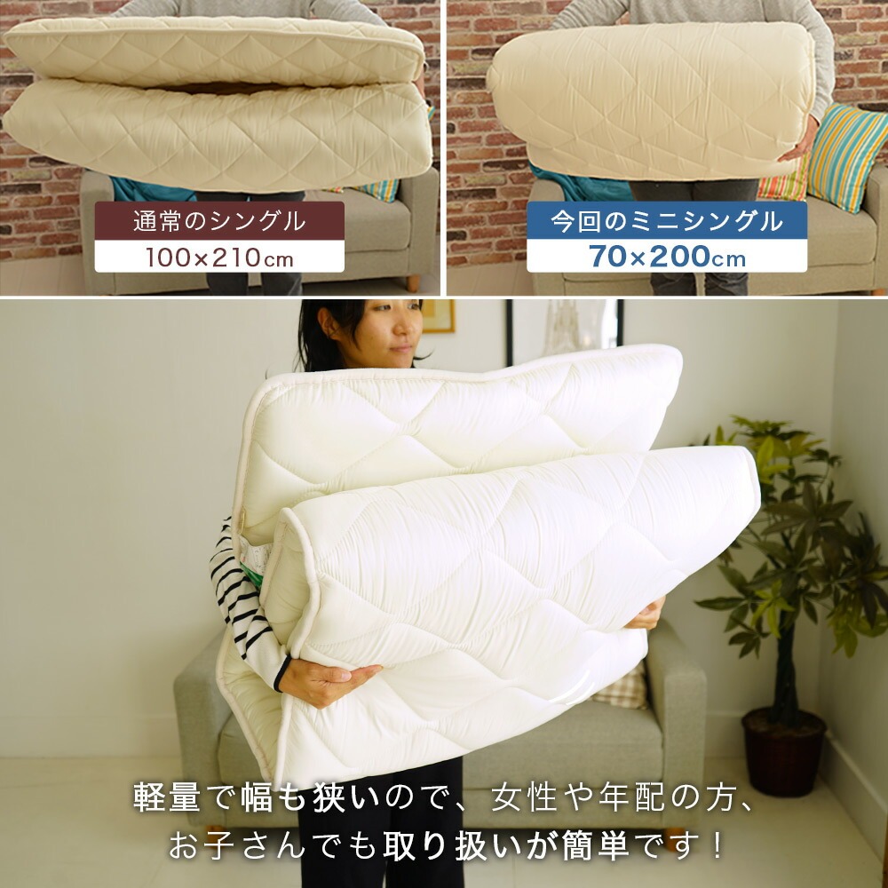 | サイズ | 約70×200cm(ミニシングル) 厚み:約7cm |