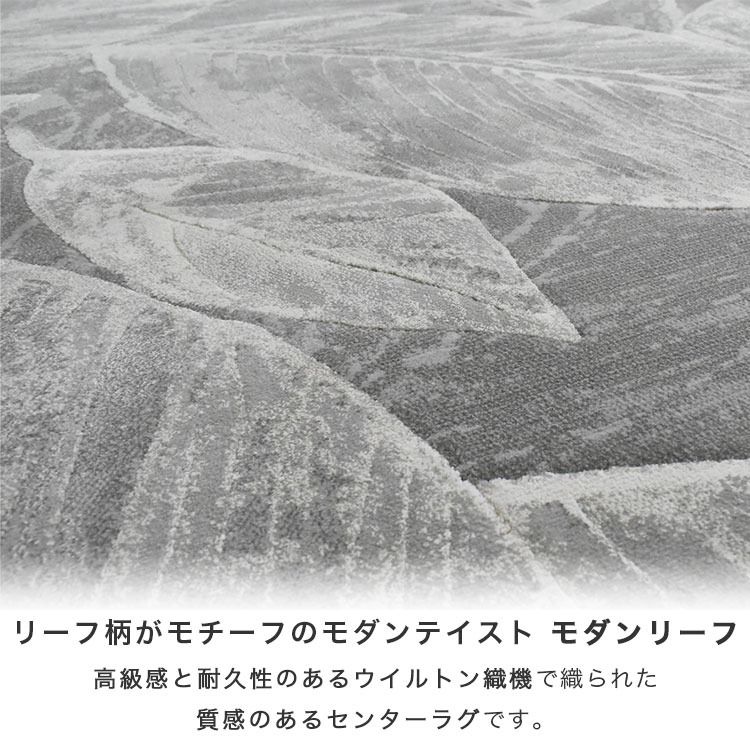 高級感と耐久性のあるウィルトン織機で織られた質感の有るセンターラグです リーフ柄をモチーフにしたモダンなテイスト