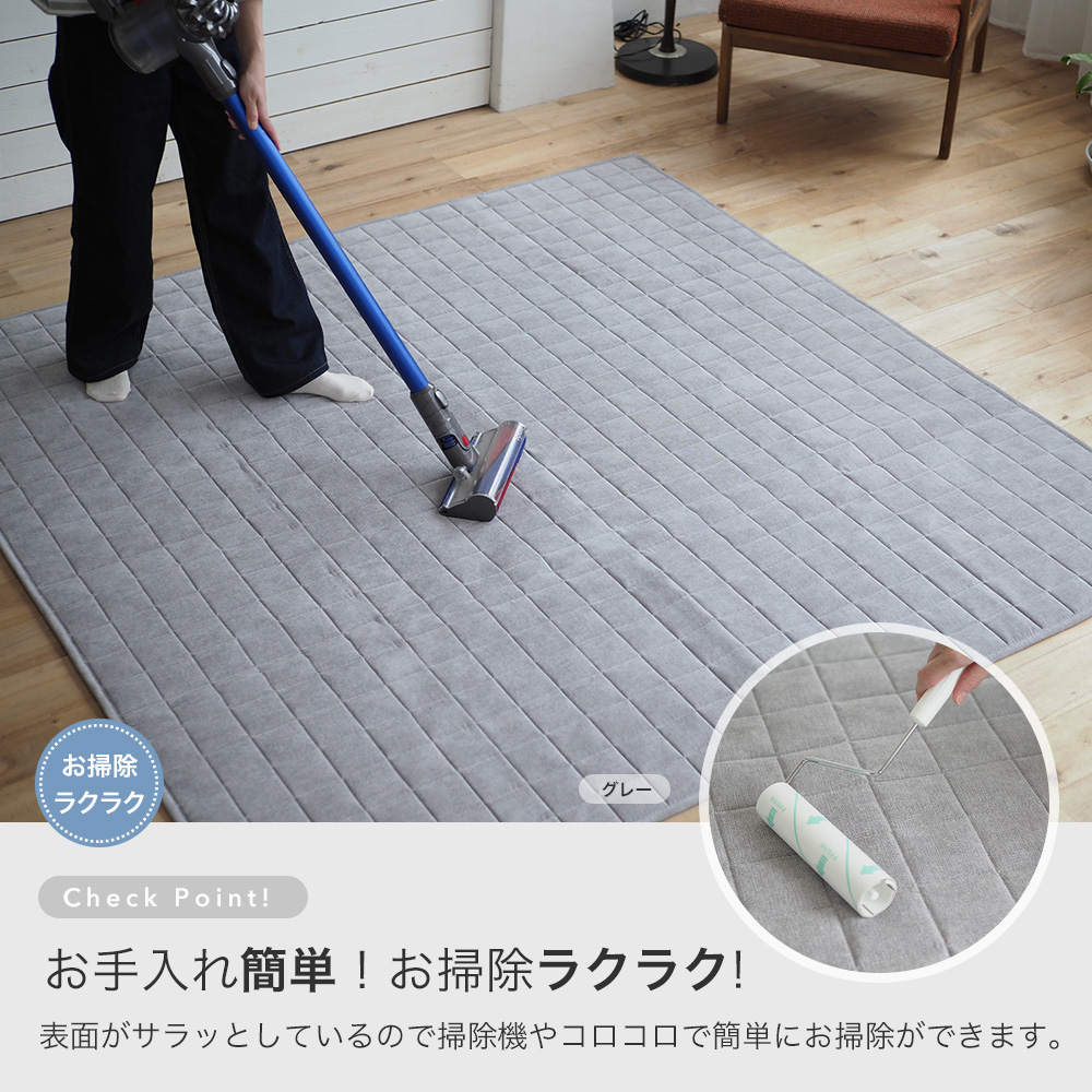 丸洗いOKの無地のキルティングラグ しっとりとした優しい肌触り