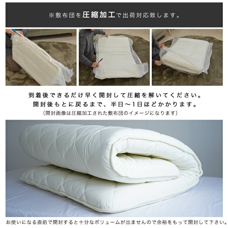 (※敷布団は圧縮加工で出荷いたします。到着後すぐに開封してください。開封後もとに戻るまで半日~1日ほどかかります。)
