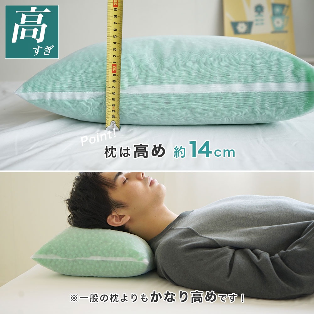高い枕に慣れていない方にはかなり高めに感じられると思います。