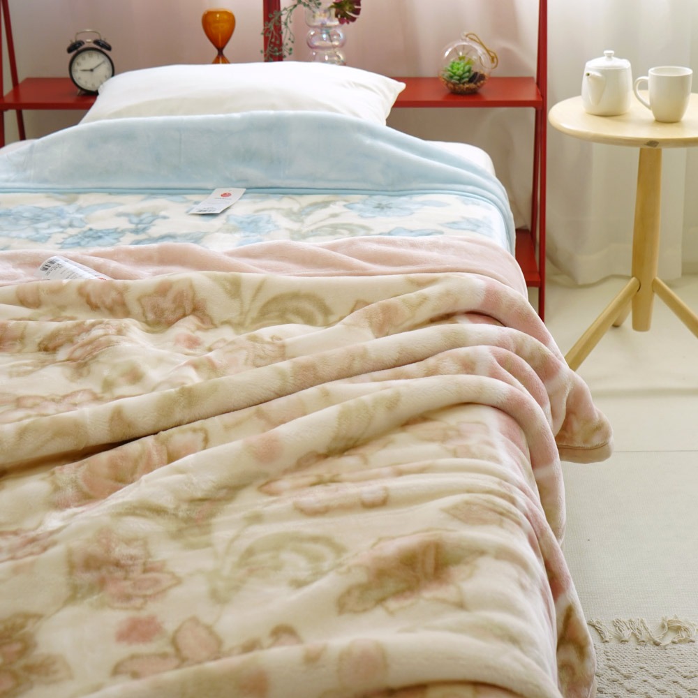 2枚合わせでしっかり暖い、安心のブランド西川製マイヤー毛布です。