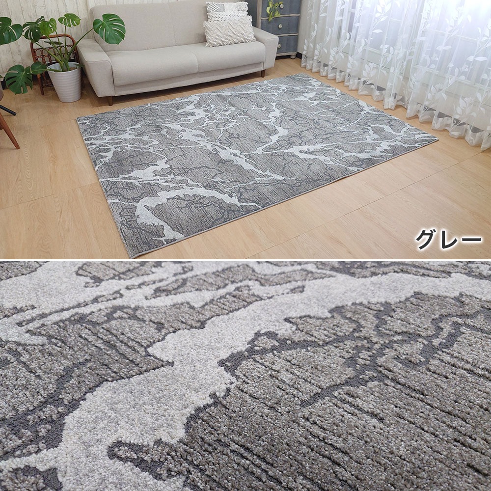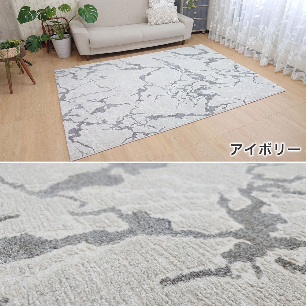 大理石がモチーフの優美なデザイン「ノヴァ」高級感と耐久性のあるウイルトン織機で織られた質感のあるセンターラグです。フリーズ加工されたヒートセット糸はより丈夫でやわらか。遊び毛などが出にくく清潔にお使いいただけます。