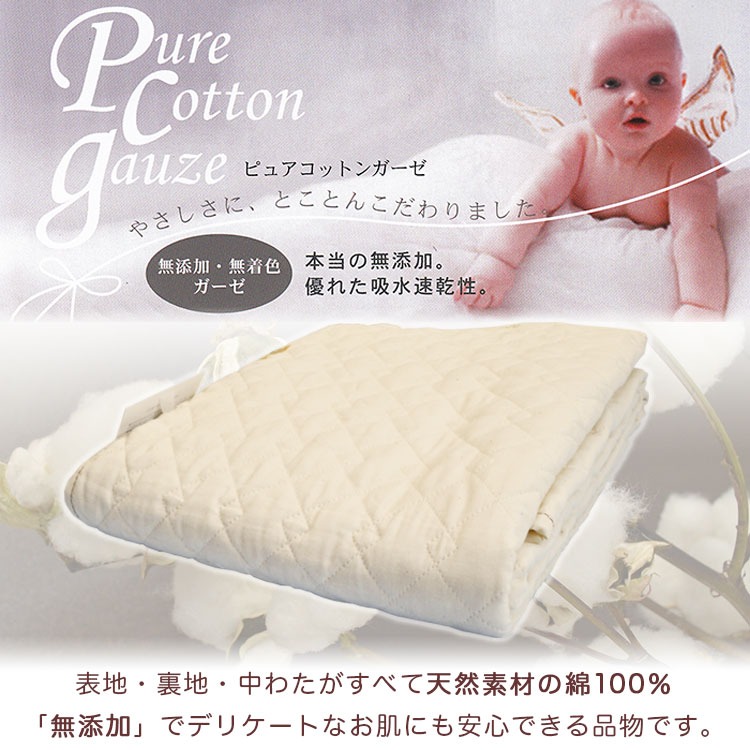 ピュアコットンガーゼは、漂白をせず生地本来の風合いや肌触りを活かした