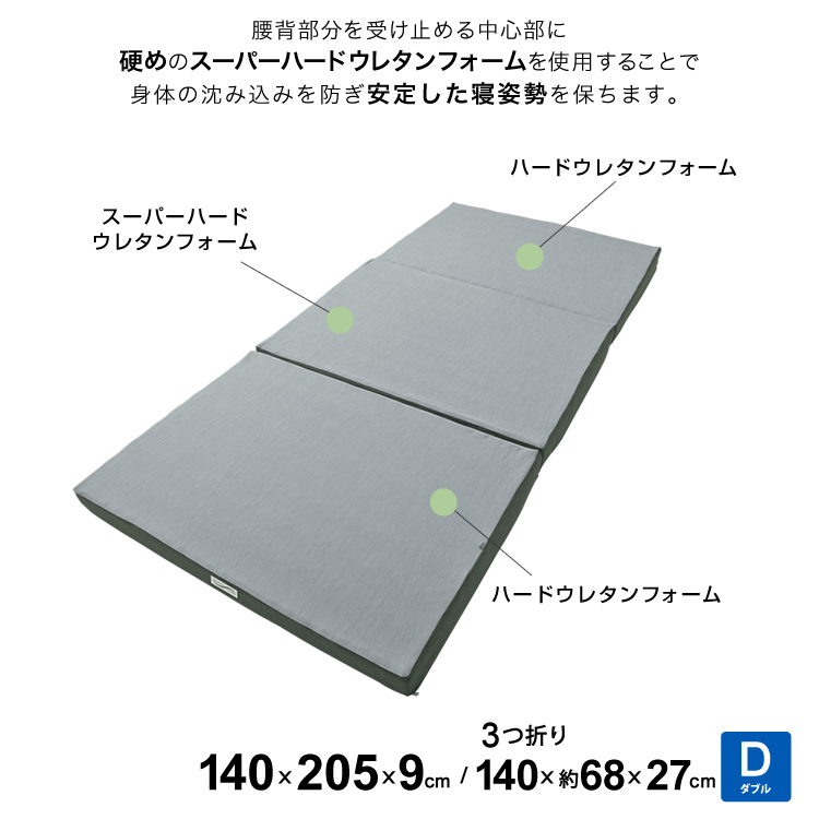 腰背部分を受け止める中心部に硬めのスーパーハードウレタンフォームを使用することで身体の沈み込みを防ぎ、安定した寝姿勢を保ってくれます。