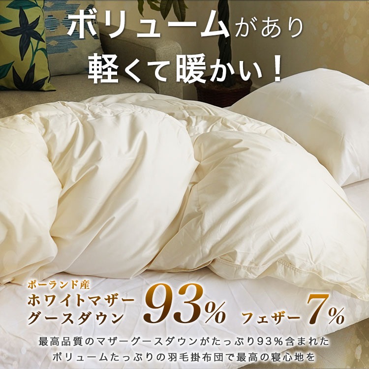 | 中身 | ポーランド産 ホワイトマザーグースダウン93% フェザー7% 1.7kg プレミアムゴールド |
