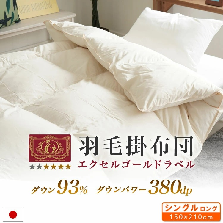 エクセルゴールドラベル付きの日本製・羽毛掛け布団です。