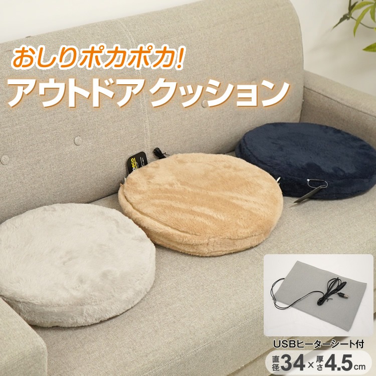 ヒーター付き クッション 円形 オフィス アウトドア 在宅ワーク USB対応 送料無料
